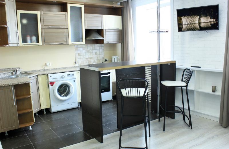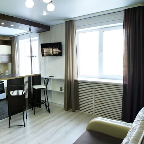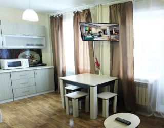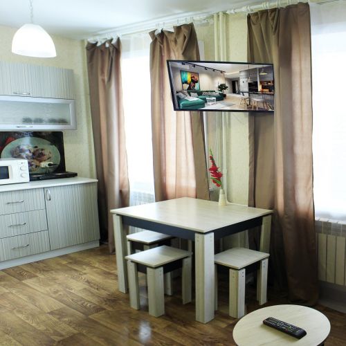 Апартаменты разместились по улице Советской в жилом 5-этажном доме. В одно- и двухкомнатных номерах установлена вся необходимая техника и мебель. В распоряжении гостей прихожая, двуспальная кровать, раскладной диван. На полностью оборудованной кухне – посуда, плита, холодильник, микроволновая печь, обеденная зона. Предусмотрено постельное белье и полотенца, санузел совмещенный с ванной, предоставляются туалетно-гигиенические принадлежности, фен. Для максимального удобства имеется стиральная машина, гладильные принадлежности. В свободном доступе беспроводной интернет wi-fi.