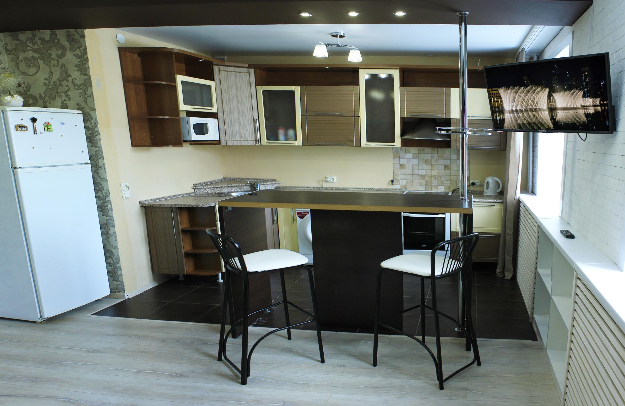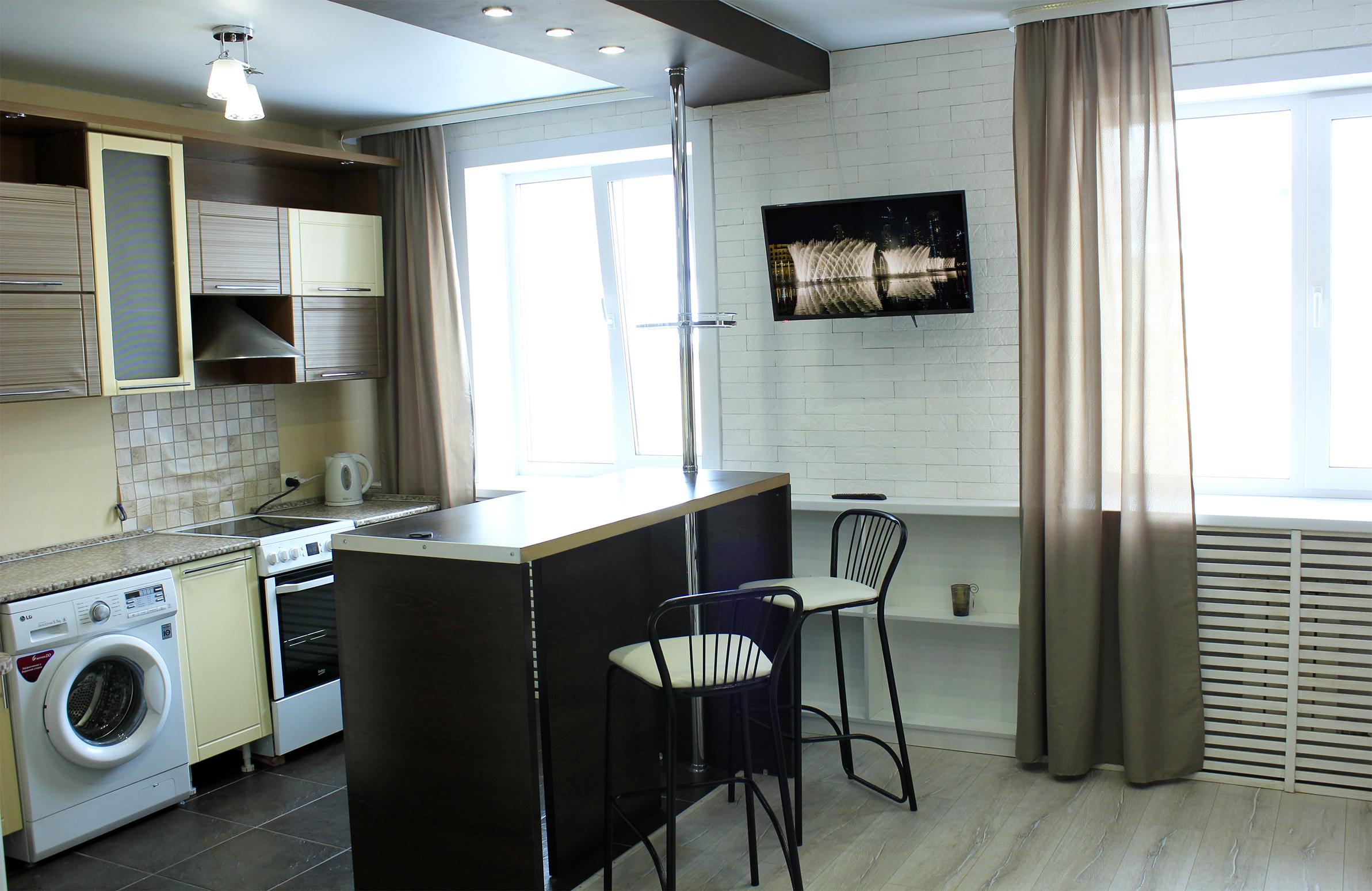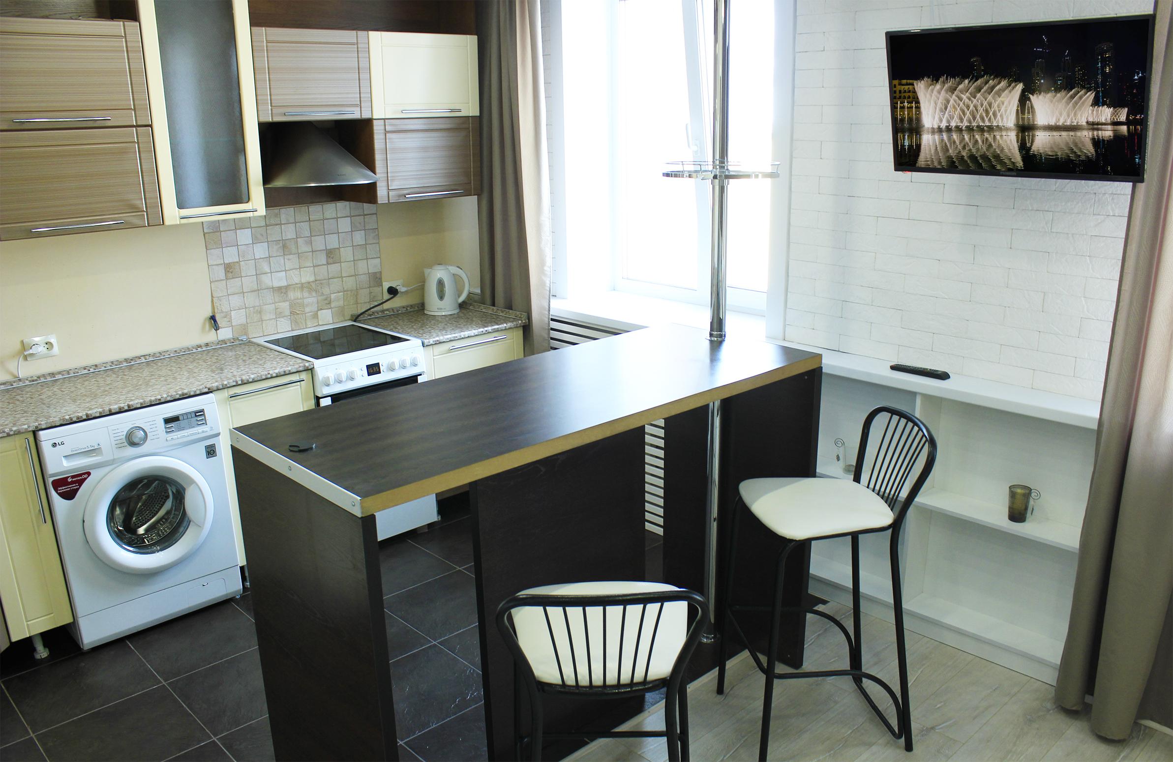 - Оборудование: гладильная доска, микроволновая печь, набор посуды, плита электрическая, стиральная машина, телевизор, утюг, холодильник, электрочайник