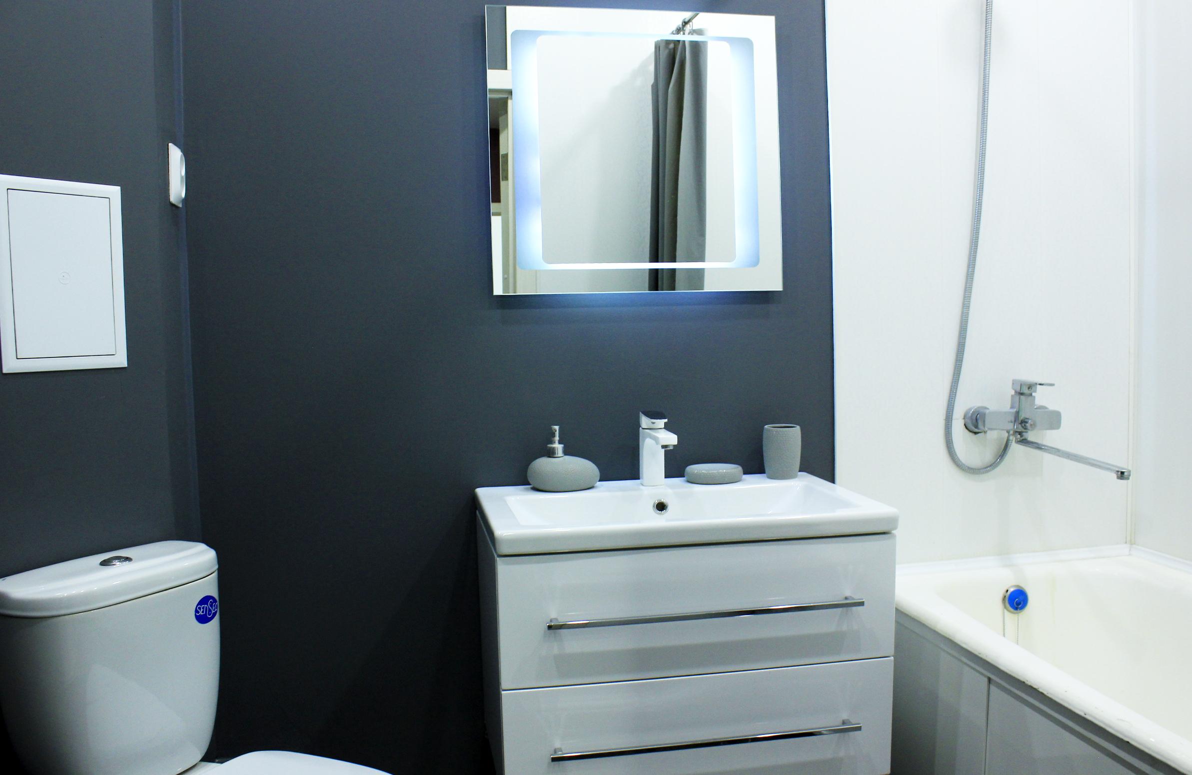 - Санузел: с ванной, туалетные принадлежности, фен